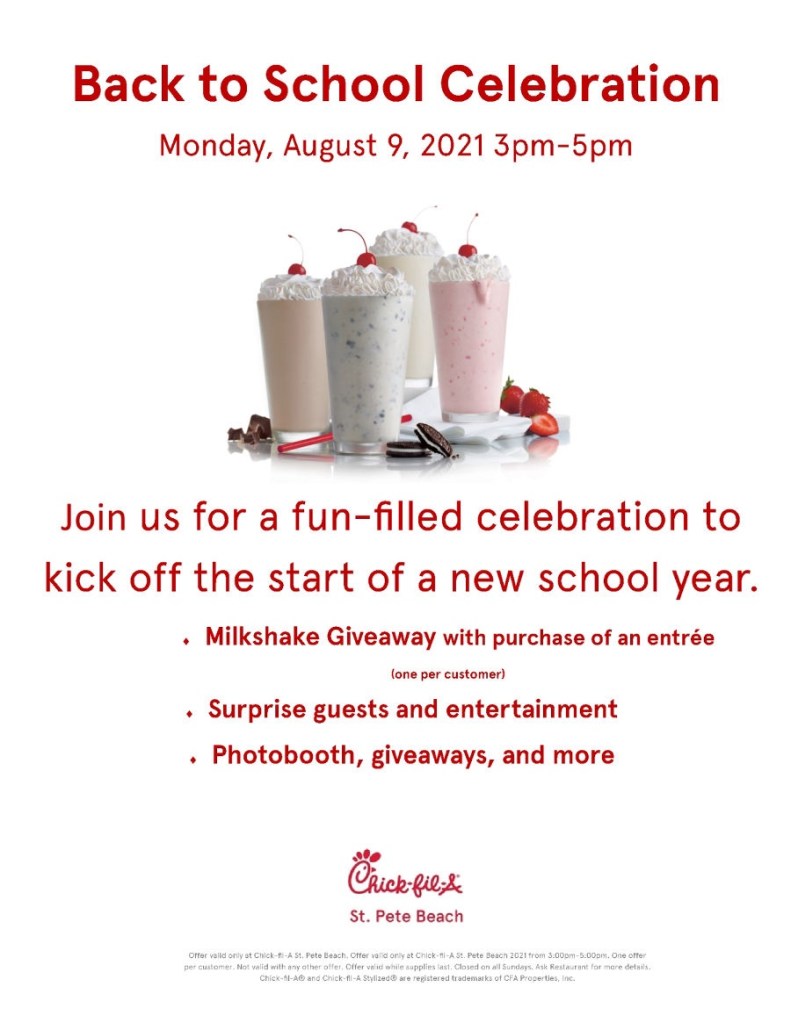 EventsChick-fil-A Back to School Celebration August 6, 2021 sanderlinptsa Share this: Click to share on Facebook (Opens in new window) Facebook Click to share on X (Opens in new window) X