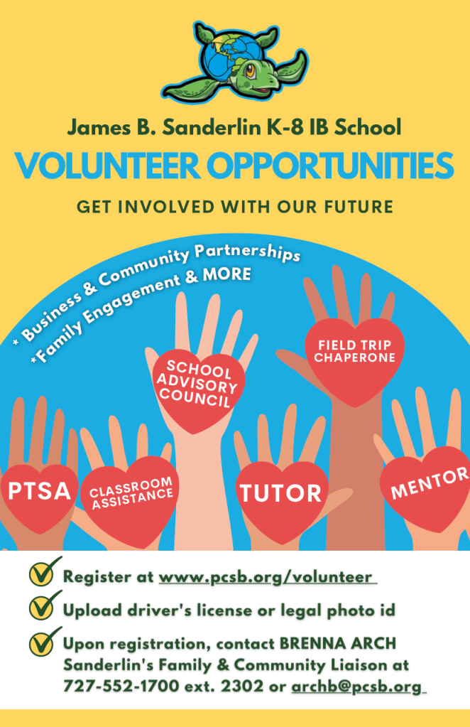 3) Sanderlin needs volunteers. Please see the attached volunteer flyer with details on how to register!