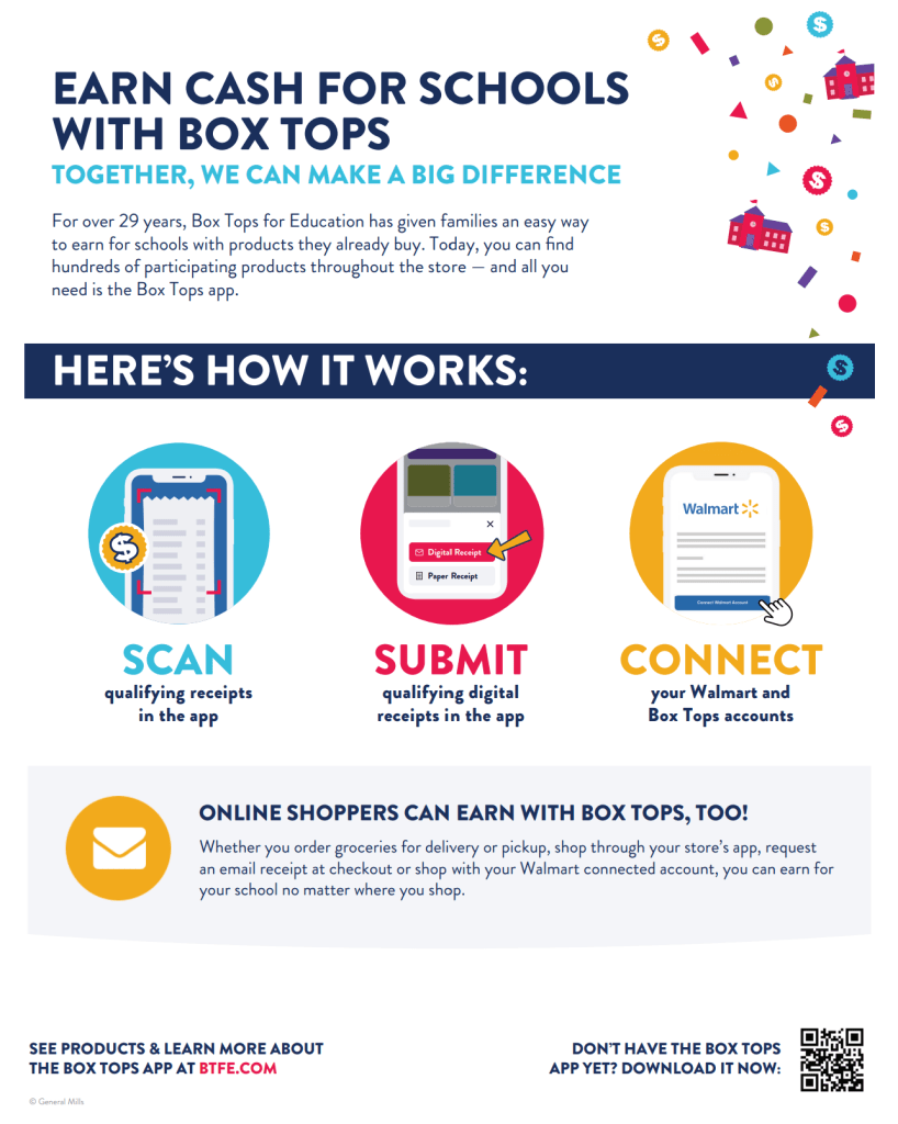 You can now scan your receipts to collect Box Tops for Education! These Box Tops are found on many of your household items and grocery packages.